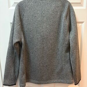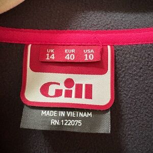 Stylish gray pullover with pink accents from Gill Sports. Features a half-zip design and logo patch and small pocket on the sleeve.