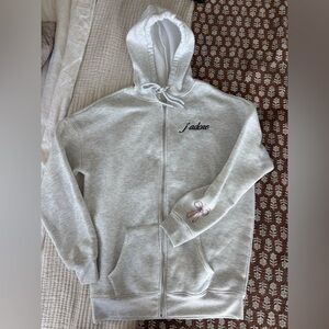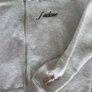 Gray and Pink Girlhood Core Cozy Zip Up Paris Hoodie with bow detail