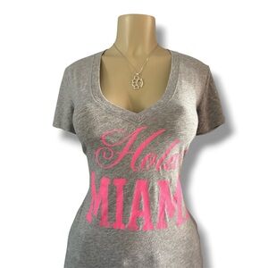 M Victoria’s Secret PINK grey short sleeve with pink lettering that say “Hola! Miami”