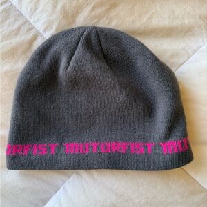 Gray and Pink Motorfist beanie