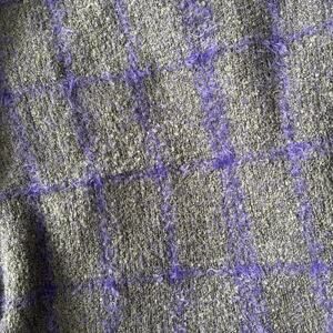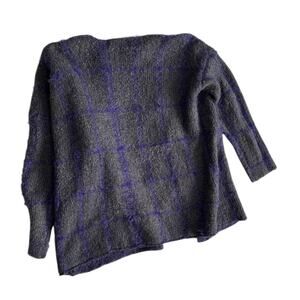 Gray and Purple Plaid Open-Front Sweater Fuzzy Knit Refurbished
