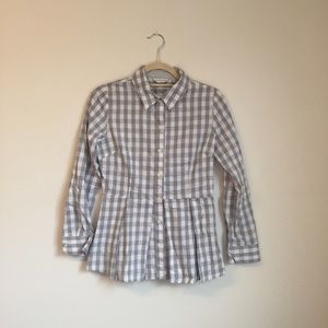 Gray and White Checkered Peplum. Cuffed sleeves. Perfect Under jackets or sweaters! Worn Once!