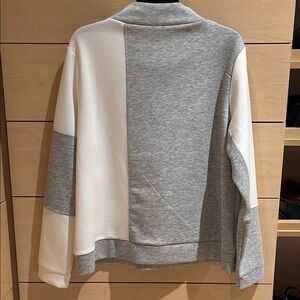 Brand new: Stylish gray and white cowl neck sweatshirt with matching joggers. Very fashionable set!