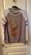 Stylish gray and white long sleeve top featuring a gold sequin deer design. Perfect for casual wear.