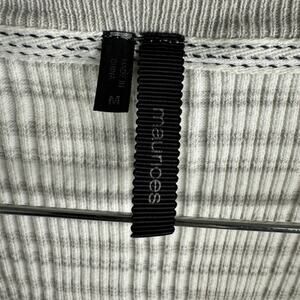 Fitted ribbed button-up cardigan in soft white and gray tones with subtle stripes and contrast trim. Features a flattering deep V-neckline, body-hugging fit, and long sleeves with a clean minimal vibe. Perfect as a standalone top or layered over a cami. Ideal for clean girl, off-duty model, or 2000s Y2k minimalist aesthetics. Super cute with denim or a pleated mini skirt!