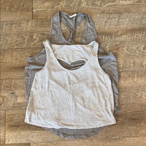 Stylish and comfortable gray and white striped tank top for women. Perfect for casual outings and everyday wear.