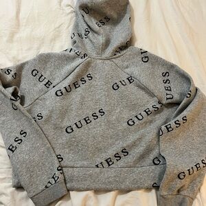 Gray and black Guess logo cropped hoodie size Large