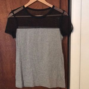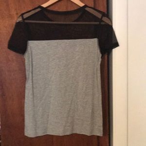 This top has a see through black top and the gray bottom is a cotton T-shirt material
