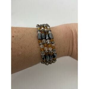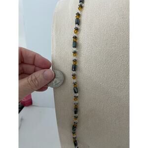 Super stylish unique magnetic silver tone orange and gray glass bead necklace in good condition with tarnish on metal beads likely vintage can be worn as a stacked bracelet on the heavier side great for school work going out parties holidays vacation boho retro 90s chic twee casual preppy hippie skater emo glam cottage coastal grandmother