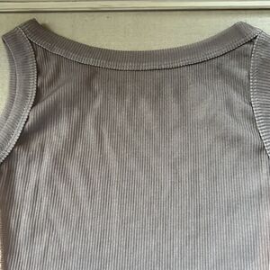 Gray and peach ribbed knit flowy boho ribbed knit crop top w outside seam detail M