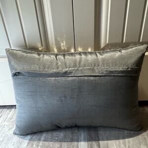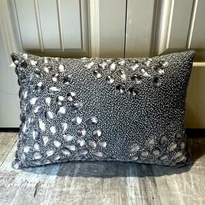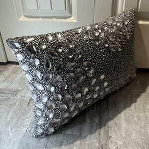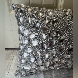 Gray and silver jeweled rhinestone pillow, silk with beaded accents