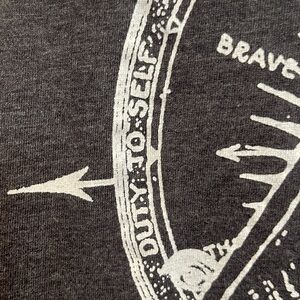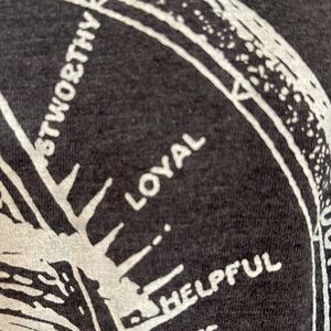 Gray and white high-low tank top with “Duty to self” “duty to others” “duty to country” “clean, brave, trustworthy, loyal, helpful” size XS. Approximate measurements are 17 1/2 pit to pit and length from shoulder is 24 and 26