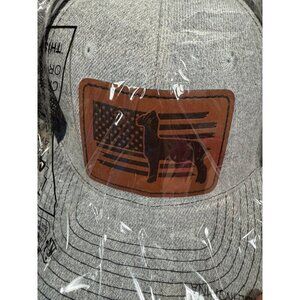Gray and white trucker cap with raised American flag llama patch. Adjustable
