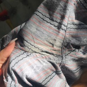 Gray button down with patterns. Stained in the armpit area. Picture included.