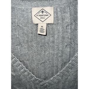 Gray cable knit v-neck pullover fall winter cozy sweater St. John’s Bay size XL