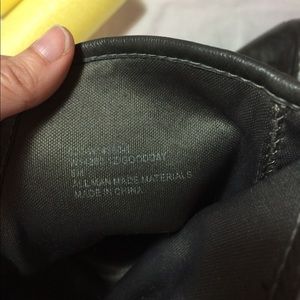 Dark gray fabric & hardware. Small factory tear in liner in 1 boot (pictured). Worn a few times, but look new other than the bottoms & a couple blemishes on the backs of the boots. Everything is pictured. Super adjustable buckles. Best for smaller calfs. Is that how you spell that?