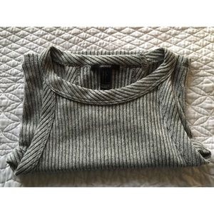 Gray crop top sweater from Forever21. Size large, I bought it big so it wouldn't be as cropped and only show a peek of my stomach. I'm a size small normally. Cover picture is very similar to actual top. In new condition it's never been worn. I was unable to return due to tag removal.