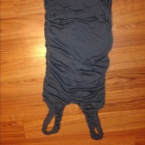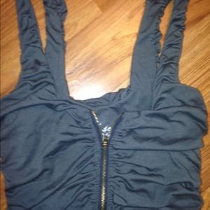 Scrunched up dress with a zipper on the front. Comes up above the knees. Wet seal