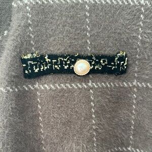 Elevate your wardrobe with this chic gray cardigan sweater featuring elegant tweed trim. Perfect for layering, this sweater adds a touch of sophistication to any outfit.