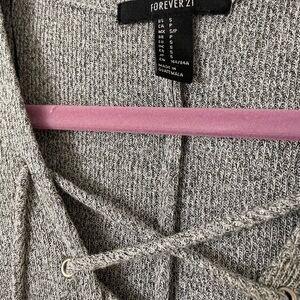 Super comfortable, perfect with a sweater in the fall or that one in spring summer. Small yellow stain shown in photo. I have not tried to get it out. Can’t see it from a far.