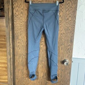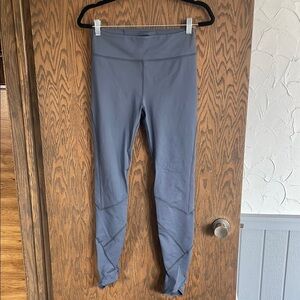 Stylish gray high-waisted leggings. Perfect for workouts or casual wear.