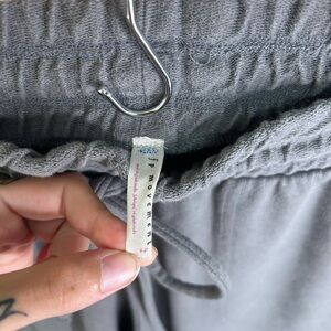 Comfortable gray jogger pants with drawstring waist and pockets. Been worn quite a bit but no stains