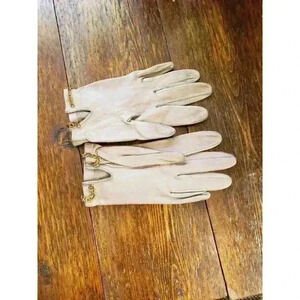 Gray leather Grandoe Glove womens driving gloves size 6 1/2 metal greige short