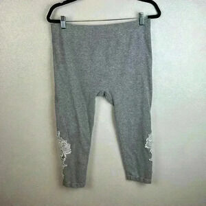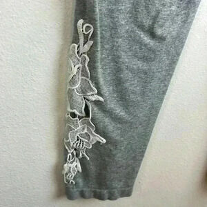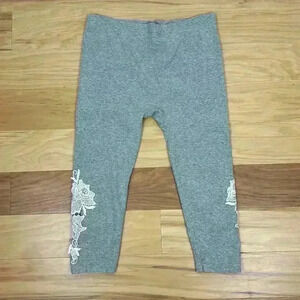 No size tag! Please see measurements. Cute gray leggings with leg lace accents,