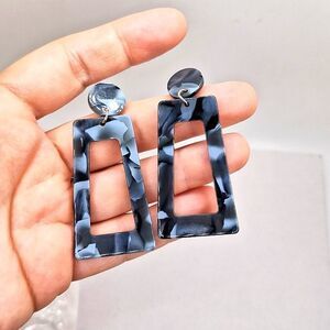 Gray marble Style Crush Geometric Resin Abstract Earrings tortoise shell