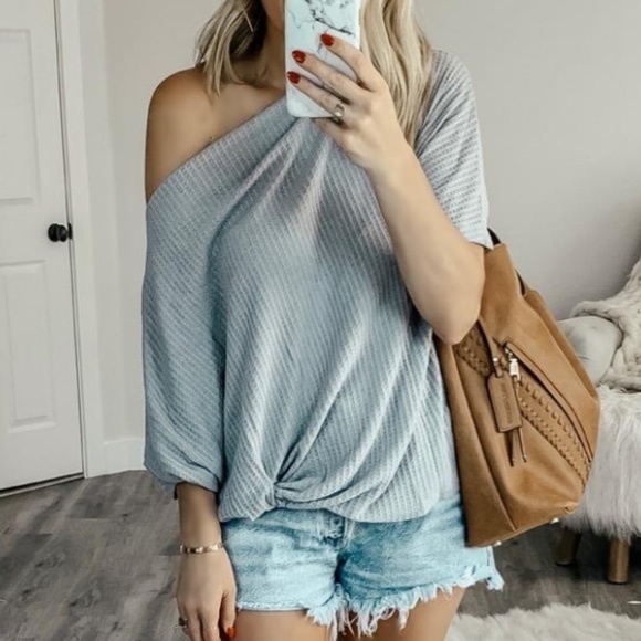 Waffle Knitted, lightweight , draped blouse, bat wing sleeves