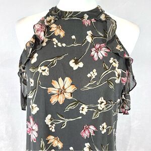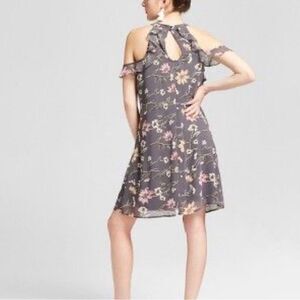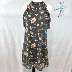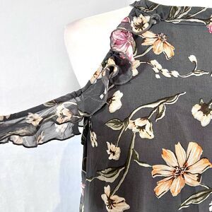 Gray orange and pink floral print off shoulder ruffle shift dress size small