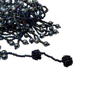 Gray pearls peacock beads mesh bib necklace 21" wearable length.