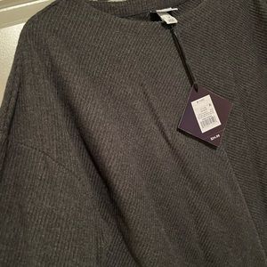 NWT! Gray pullover top with flattering ribbed pattern. Measures approx. 23” across the front at the bust and 28” from shoulder to bottom.