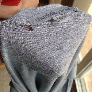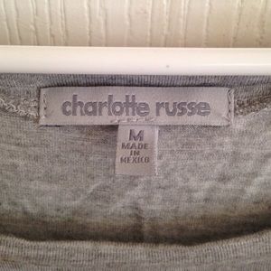 Very soft, Size M but could fit a small. Tiny hole near tag but not noticeable. Lace frills on shoulder sleeves, worn once!