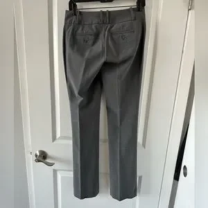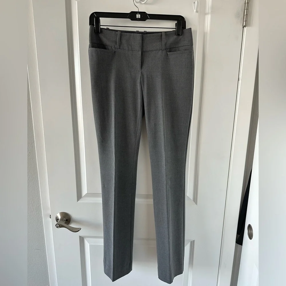 Gray slacks, slim fit, straight leg