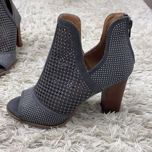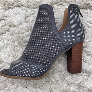 Gray suede rhinestone booties