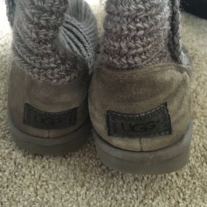 Gray sweater used UGG boots. Gray backs are a little discolored like shown in pic above. Normal wear and tear of the boots. Can be cuffed and rolled down as well for a cute shorter boot look 💕