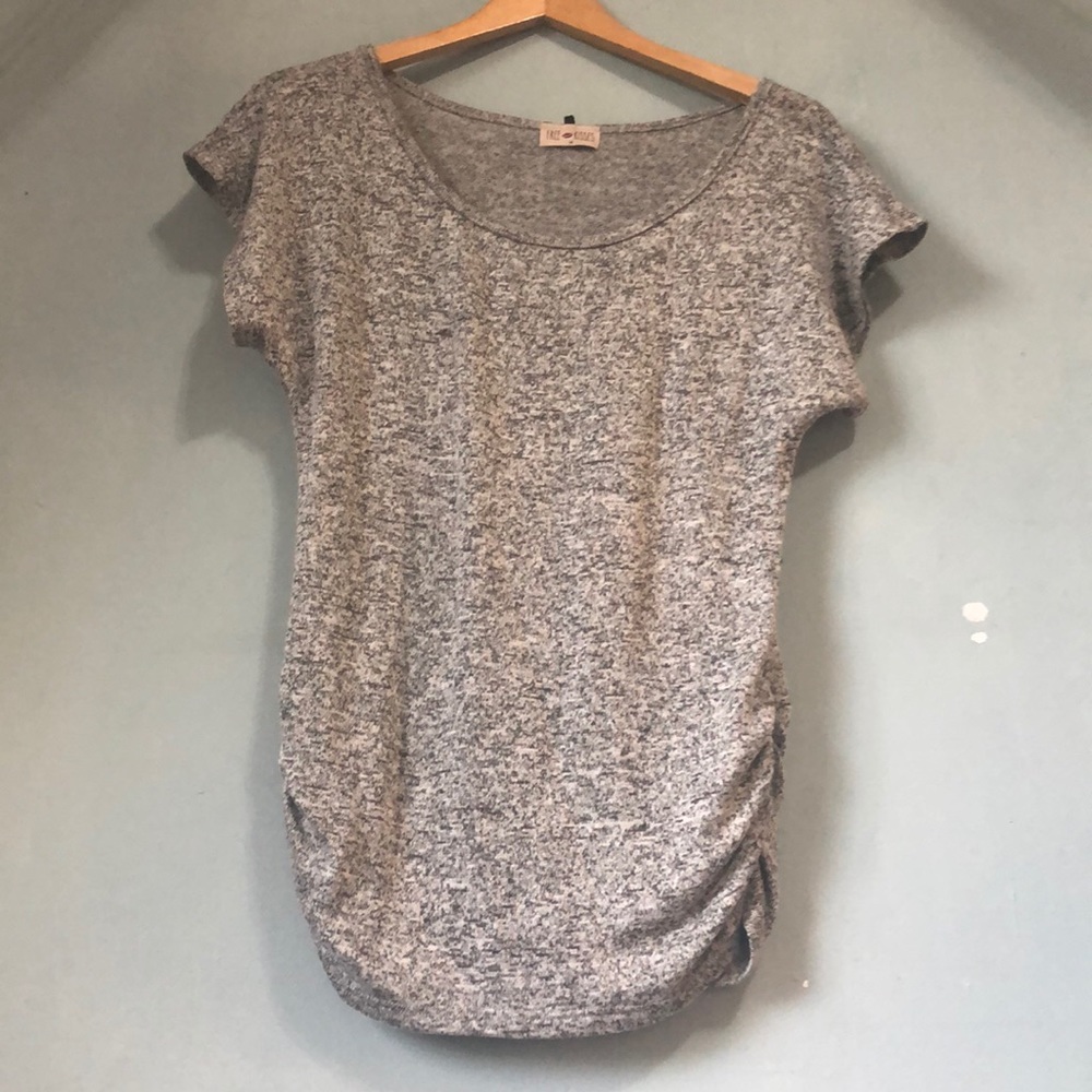 Gray sweater top. Scoop neck. Short sleeves. Women's size medium