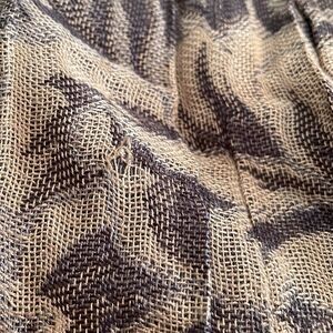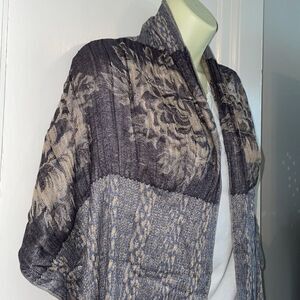Gray & tan boho scarf/wrap with floral design & fringe