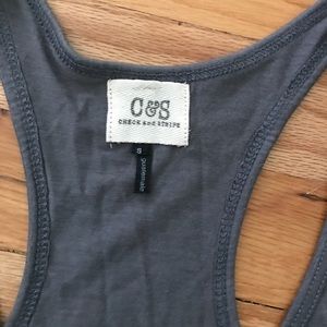 Gray tank. Loose fit. Bottom detailing in front. Light piling.