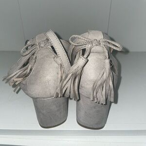 Gray tassel heels gray suede heels block heels ankle strap heels