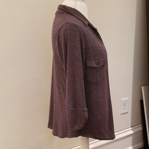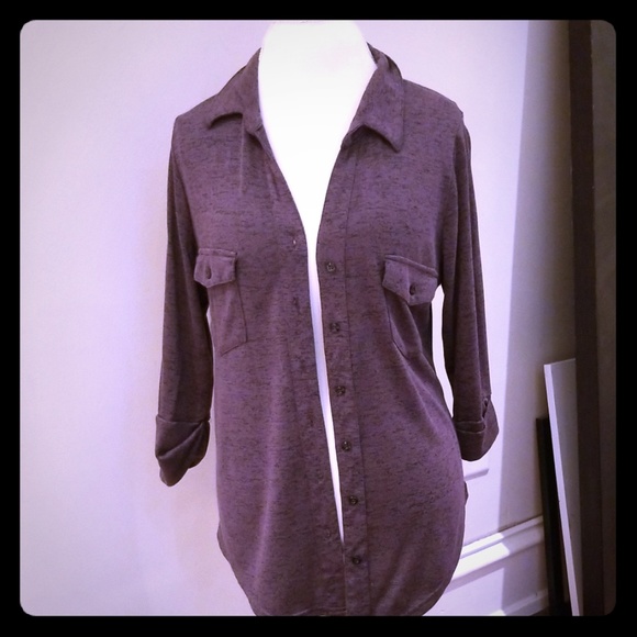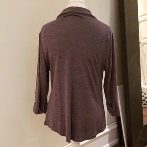 Ashley Blue spandex/cotton top. Stylish with a nice pointed collar. Never worn. Mushroom colored. Very comfy