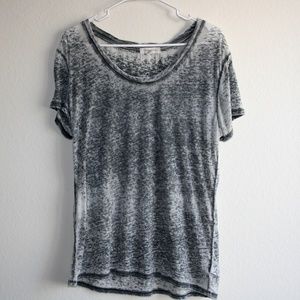 Very light and semi transparent material with a worn in look. Has been worn a bit, but is comfortable and soft.