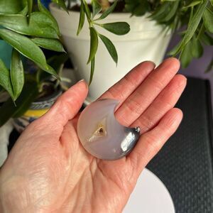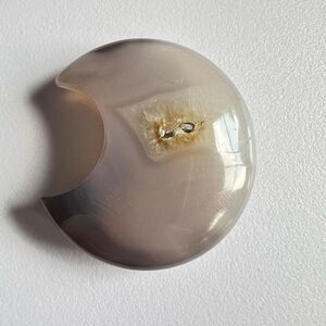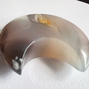 The gray agate crystal crescent moon is a captivating gemstone that emanates tranquility and balance. Its smooth, polished surface reveals delicate layers of gray hues, resembling the mystical moonlit sky. This crystal is renowned for its grounding properties, promoting emotional stability and inner strength. Its gentle energy helps in harmonizing yin and yang, fostering peace and healing. Carrying the energies of the moon, it enhances intuition and spiritual awareness. Gray agate crescent moon is believed to aid in calming anxieties and providing a sense of security.