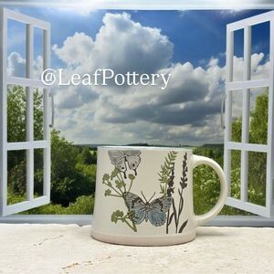 Dimensions: 3.9”H x 5.5”L x 3.5”W , weight 15oz, Hold 18 fluid ounces, Materials: Ceramic, Made in China, Color: Beige, Gray, Blue, Charming mug with floral and butterfly design, perfect for coffee or tea lovers .Microwave & Dishwasher Safe!