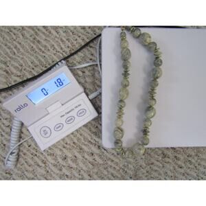 Gray/Cream Marble Round Gemstone Beaded Gold Tone Spacer Necklace Long 16.5"