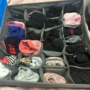 Keep your drawers tidy with this gray fabric organizer. Perfect for socks, ties, and more. Enhance your storage with style and functionality. 24 slots