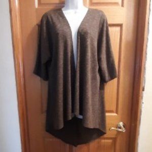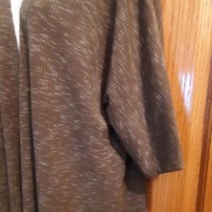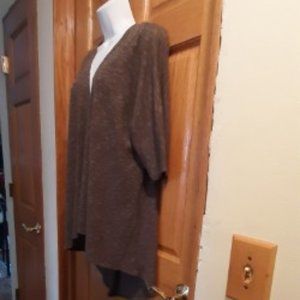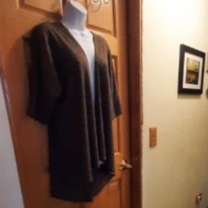 Short sleeve cardigan is a Gray/Green in color. It has a tapered back that is longer than the front. Very lightweight for summer.