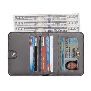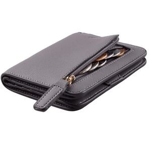Slim credit card holder made with genuine leather. This measures 4.2 inches X 3.6 inches X 0.8 inches with 6 card slots,1 cash slot,1 zipper coin pocket, and 1 ID window.