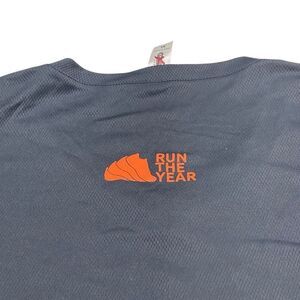 Features and details: lightweight, wicking material, v neckline, short sleeves, Run the Year 2018 graphic on front and back